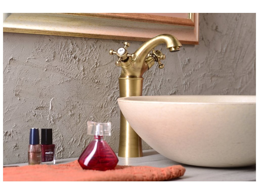 ANTEA stojánkova umývadlová batéria vysoká s výpusťou, výška 245mm, bronz DOPRAVA ZADARMO