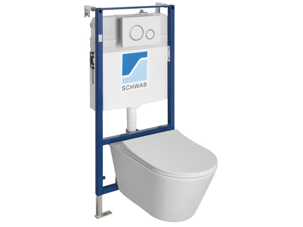 AVVA závesné WC Rimless s podomietkovou nádržkou a tlačidlom Schwab, biela