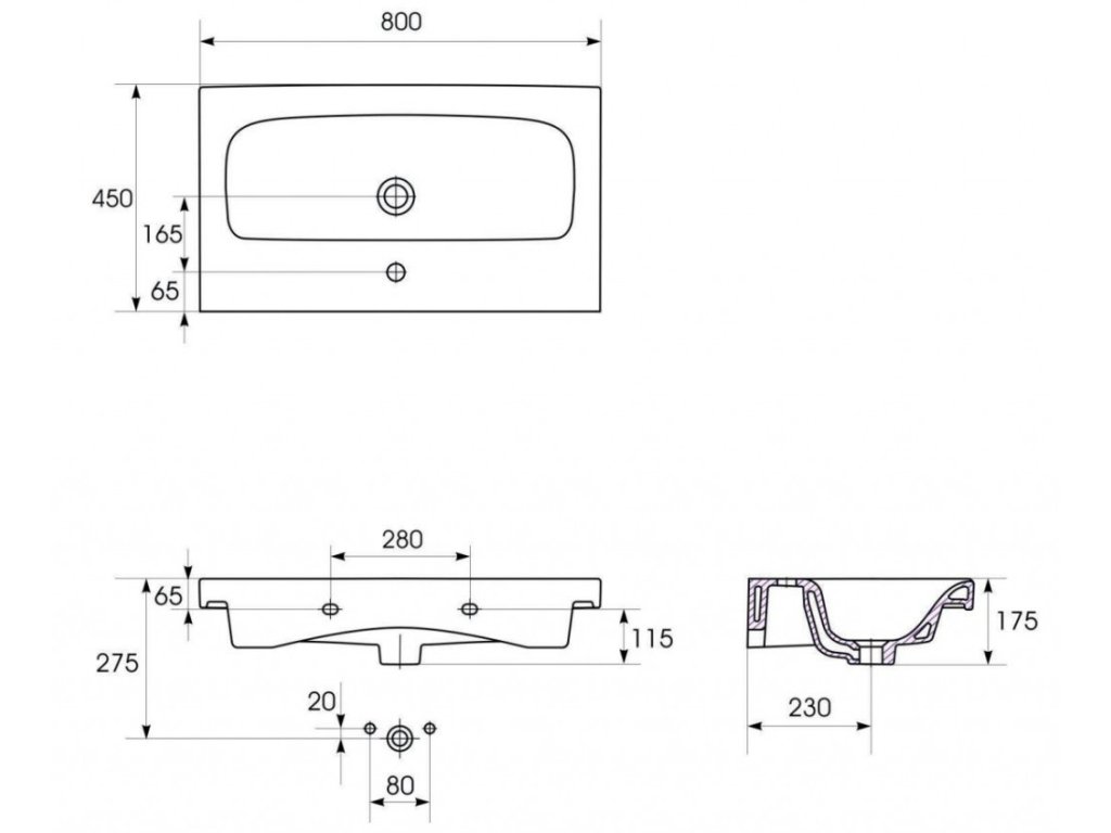 NÁBYTKOVÉ UMYVADLO MODUO 80X45 BOX (K116-013)