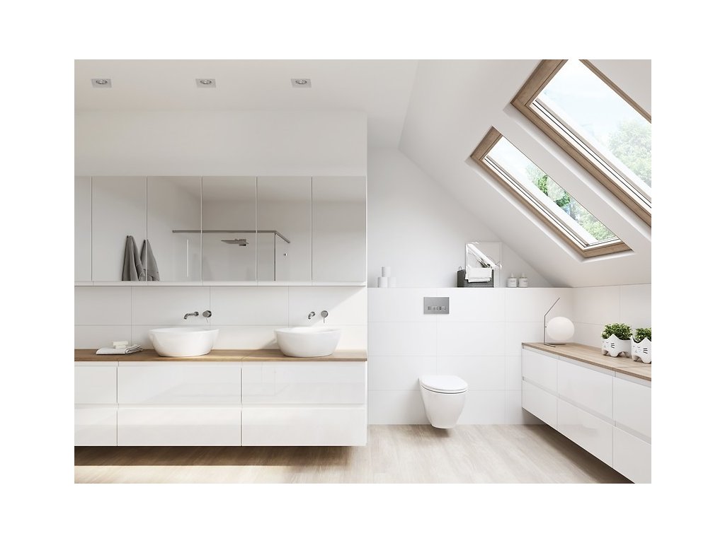 Závěsná WC mísa MODUO oválného tvaru s technologií CleanOn /bez oplachového kruhu/, kdy se nedrží nečistoty jako na standardních mísách s oplachovým kruhem a jejich údržba je jednodušší. WC mísa má ekonomický oplach vody 3/5l.