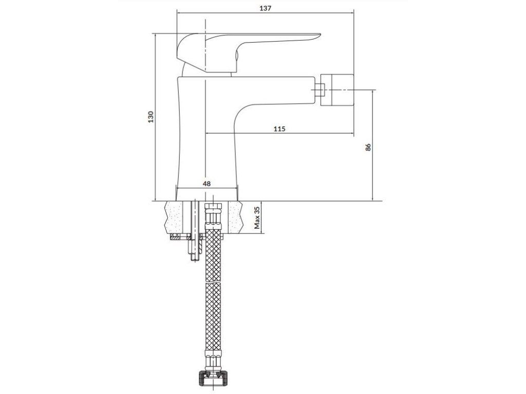 Stojánková bidetová baterie CITY v chromovém provedení s provzdušňovačem vody Cersanit Water Save je dodávána včetně flexibilních hadiček o délce 40 cm.