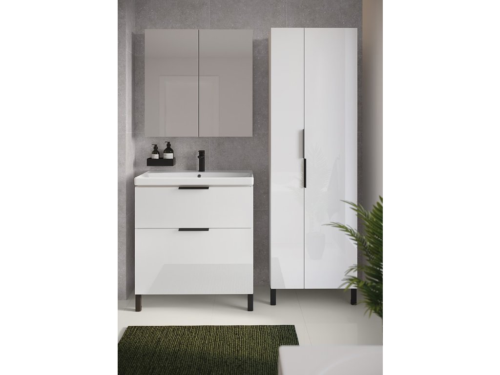 Skříňka pod umyvadlo CITY je vyrobena z dřevotřísky, vybavená dvěma prostornými zásuvkami se systémem soft-close. Skříňku sladíme s pohodlnými úchyty v černé nebo matně stříbrné barvě (prodávají se samostatně). Ve stejných barvách je možné zakoupit i nábytkové nohy, které budou plnit dekorativní funkci.