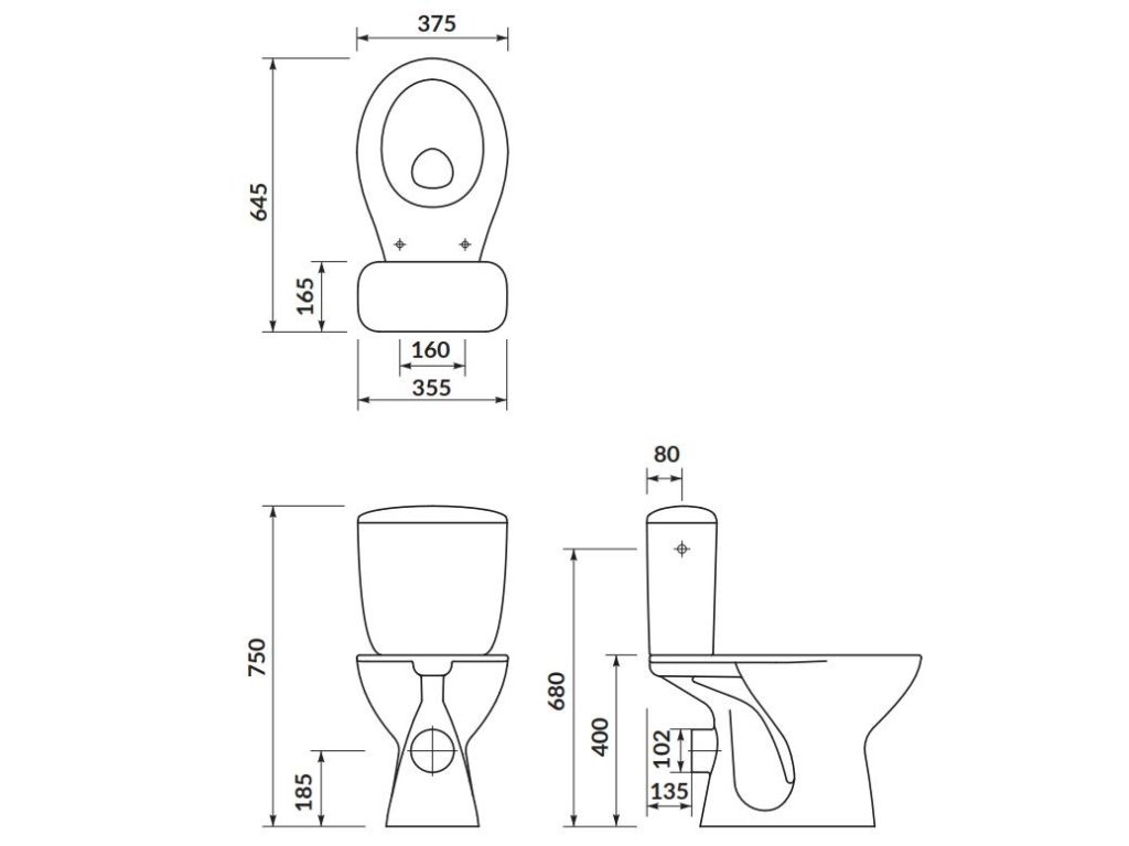 WC kombi 304 PRESIDENT 010 3/6 včetně sedátka duroplast (K08-038)