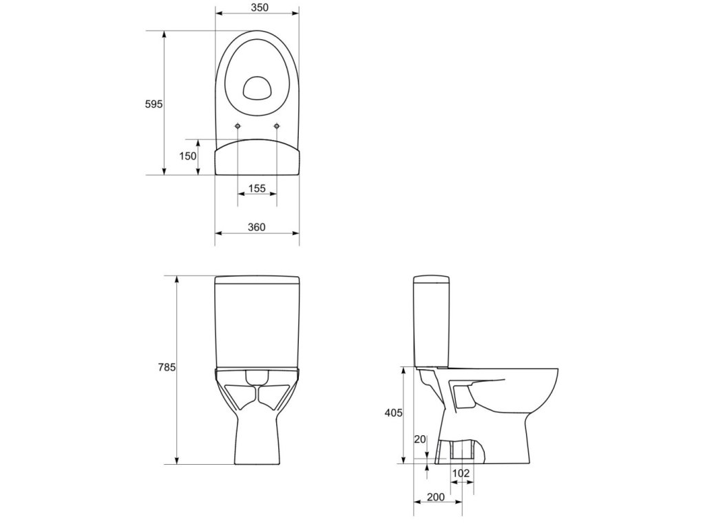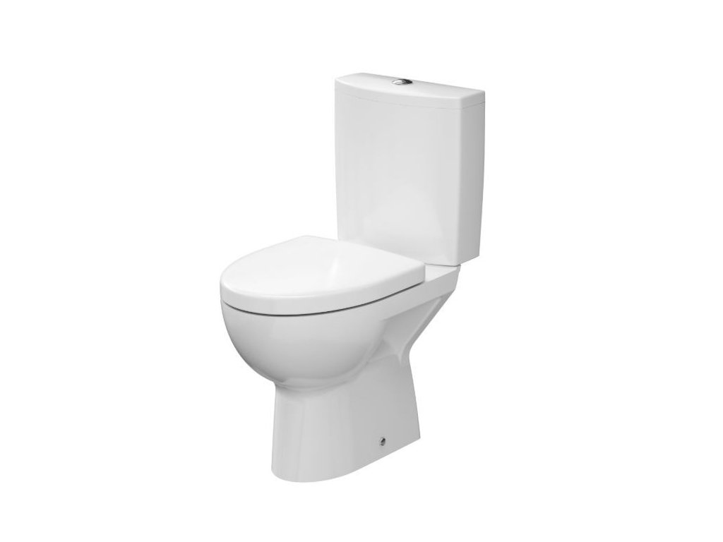 Stojící mísa PARVA Cersanit bílé barvy. Mísa se svislým odpadem, přívod vody z boku nádrže s funkcí 3/6 l. Součástí sedátko antibakteriální, duroplastové.