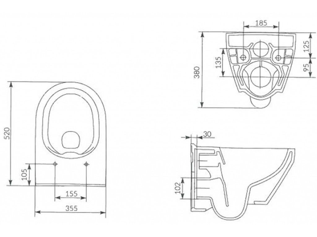 Závěsná mísa CREA, CLEAN ON /bez oplachového kruhu/ se zadním odtokem, funkce splachování 3,5l se doporučuje montovat s podomítkovou steláží.