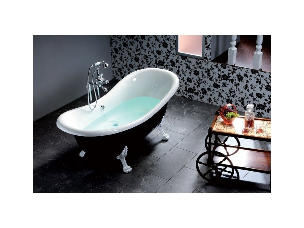 CHARLESTON voľne stojaca vaňa 188x83x69cm, nohy biele, čierna/biela