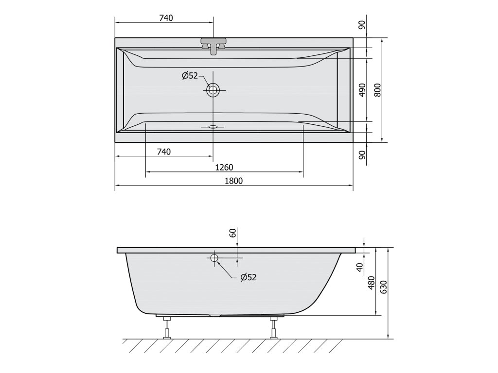 CLEO obdĺžniková vaňa 180x80x48cm, biela