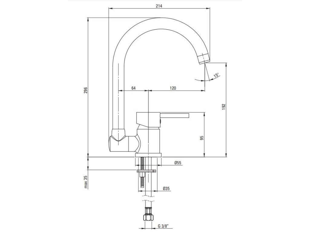 - Výklopný výtok umožňuje instalaci baterie pod okno