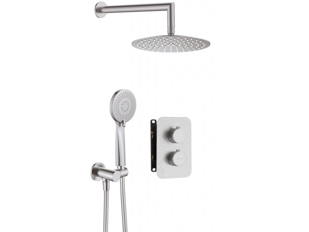 Sprchový set pod omítku má všechny potřebné prvky k vybavení sprchy. Vysoká kvalita použitých materiálů mnohokrát testovaných v laboratorních podmínkách zajišťuje bezporuchový provoz. Moderní design a estetické provedení upoutá pozornost a vestavná montáž opticky zvětšuje prostor. Tradiční řešení umožňuje získat prostor například pro přídavnou polici na kosmetiku nebo věšák. Díky tomu můžete snáze a rychleji uklidit celou místnost. Sada má termostatický BOX, který chrání před náhlými změnami teploty. To je zvláště důležité, pokud jsou mezi uživateli děti nebo starší lidé, aby se nepopálili. Také nemusíte čekat, až se studená voda ohřeje na odpovídající teplotu, a ve výsledku ušetříte tento cenný zdroj i peníze.- Pohodlná instalace - BOX můžete nainstalovat hned a kdykoli si vybrat vnější prvky