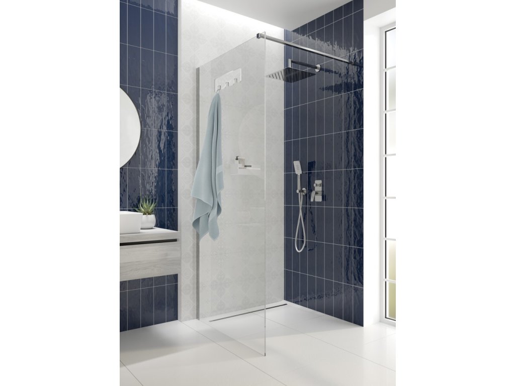 Sprchový kout je vyroben z vysoce kvalitního tvrzeného skla. Je velmi odolný a odolný a zajišťuje maximální bezpečnost pro celou rodinu. Montážní díly jsou esteticky dokončeny v souladu s barvami a stylem ostatních prvků v sérii. Celá kabina je velmi prostorná. Sprchová kabina je otevřeného typu, běžně známá jako walk-in. Nemá tradiční pohyblivé prvky, jako jsou dveře, což eliminuje riziko selhání například válečků nebo vodítek. Prvek je široký 90 cm.