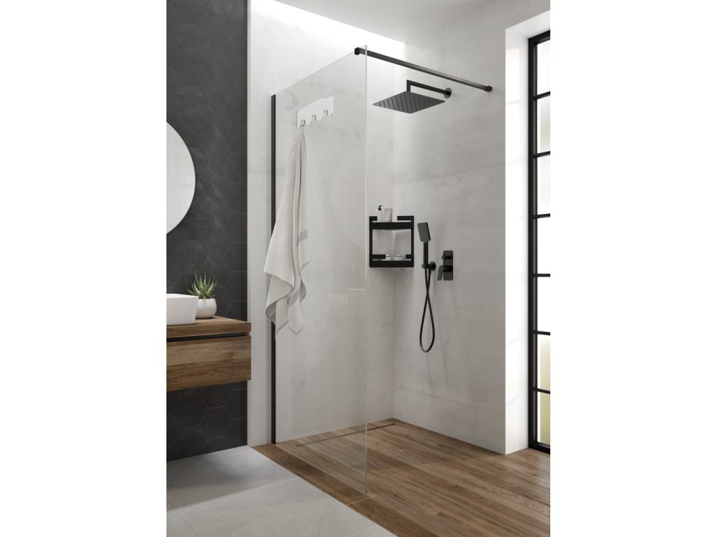 Sprchový kout je vyroben z vysoce kvalitního tvrzeného skla. Je velmi odolný a odolný a zajišťuje maximální bezpečnost pro celou rodinu. Montážní díly jsou esteticky dokončeny v souladu s barvami a stylem ostatních prvků v sérii. Celá kabina je velmi prostorná. Sprchová kabina je otevřeného typu, běžně známá jako walk-in. Nemá tradiční pohyblivé prvky, jako jsou dveře, což eliminuje riziko selhání například válečků nebo vodítek. Prvek je široký 100 cm.