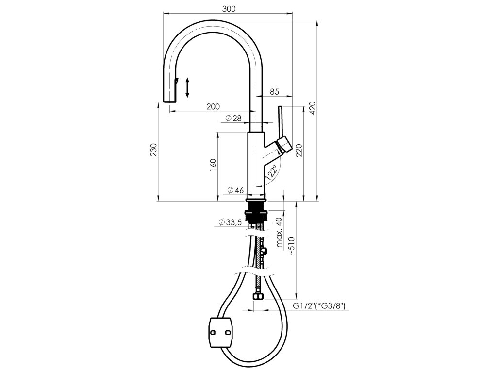 - Vyťahovacia hadica s 2-polohovou sprškou a kvalitným perlátorom
