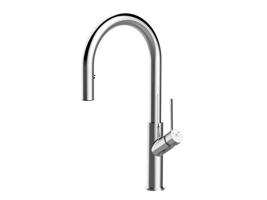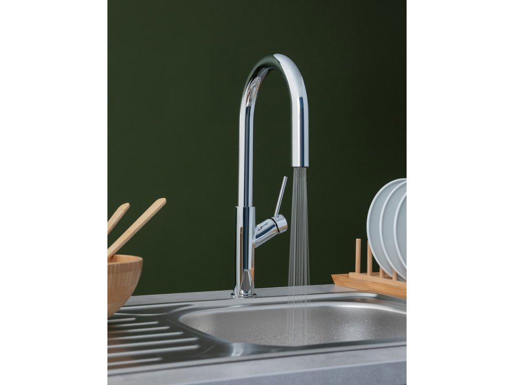 - Výsuvná 2-polohová spŕška vám ponúka vysokú flexibilitu pri čistení panvíc, hrncov a každého rohu drezu. Vďaka veľkému rozsahu pohybu môžete bez obmedzenia plniť nádoby akéhokoľvek typu a veľkosti.