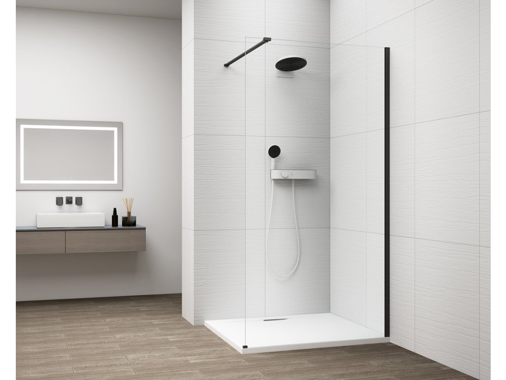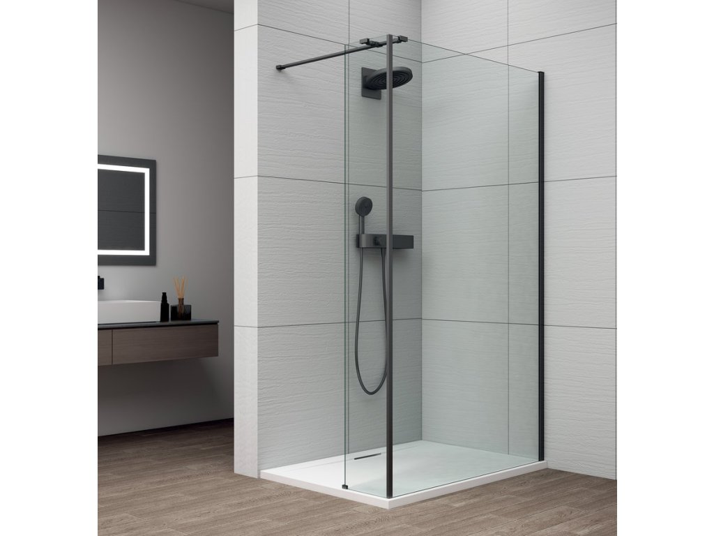 ESCA BLACK MATT jednodielna sprchová zástena na inštaláciu k stene, číre sklo, 800 mm