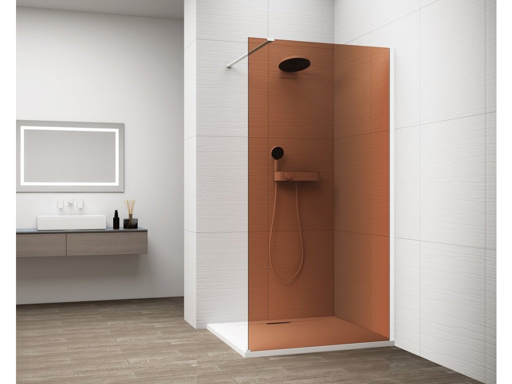 ESCA WHITE MATT jednodielna sprchová zástena na inštaláciu k stene, sklo Marron, 900 mm