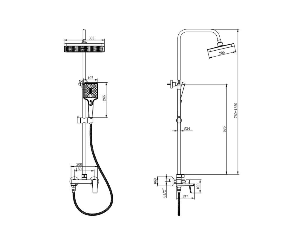FLERY sprchový stĺp s pákovou batériou, otočným ramienkom, chróm