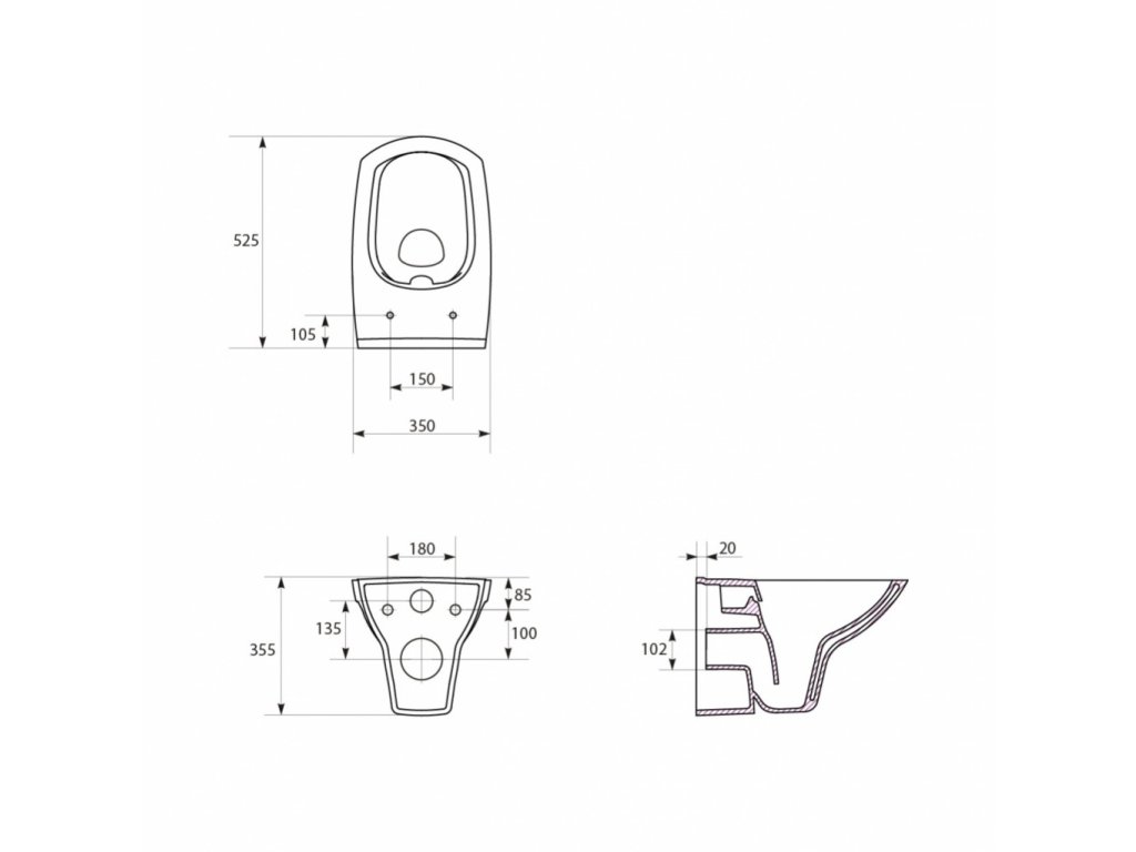 Závesná toaleta s anticalkovou úpravou, ktorá zabraňuje zachytávaniu vodného kameňa na vnútornom povrchu misy a uľahčuje jeho čistenie. Rozmery: 550x370x370 mm. Rozstup je 18cm....