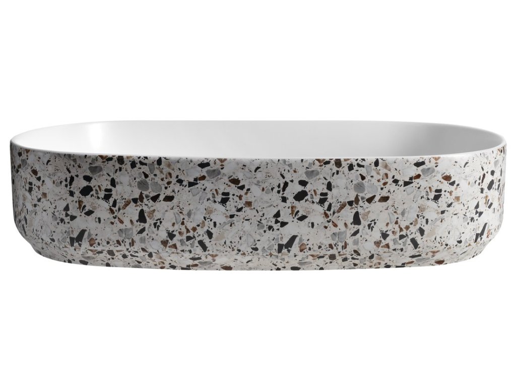 INFINITY OVAL keramické umývadlo na dosku, 55x36cm, terrazzo