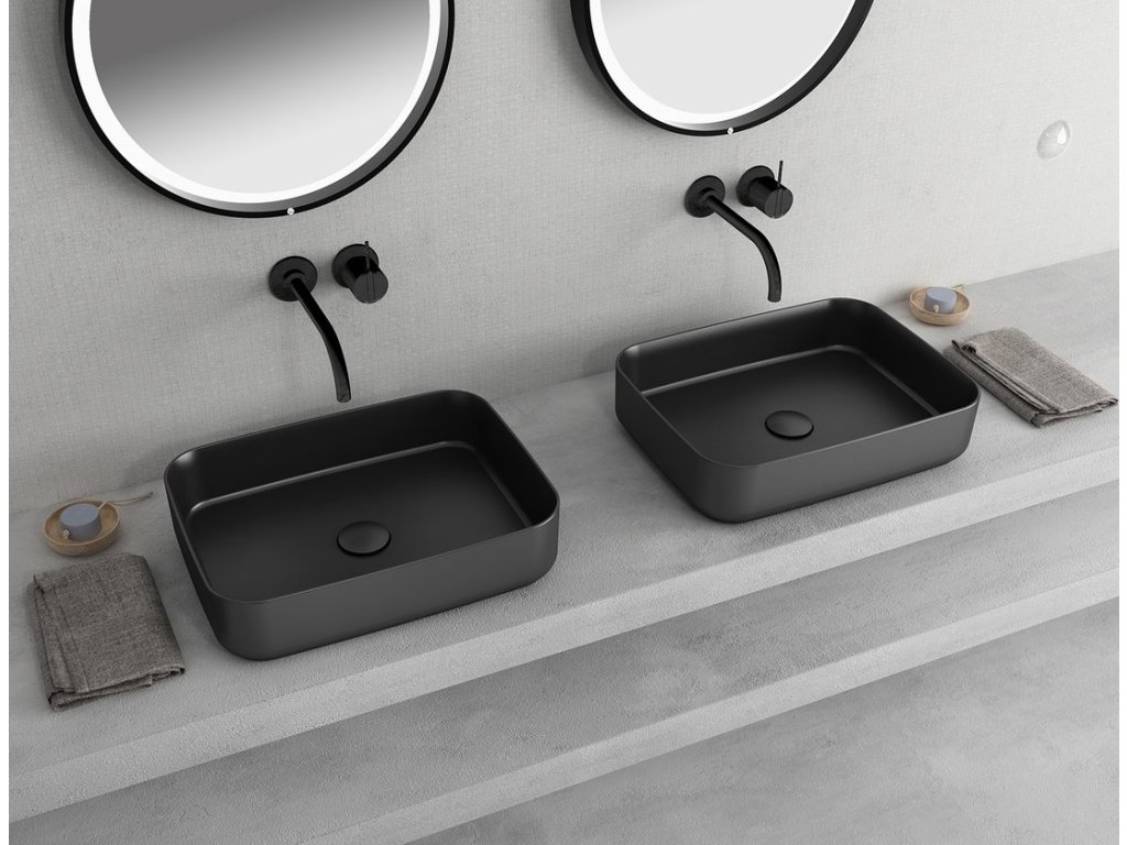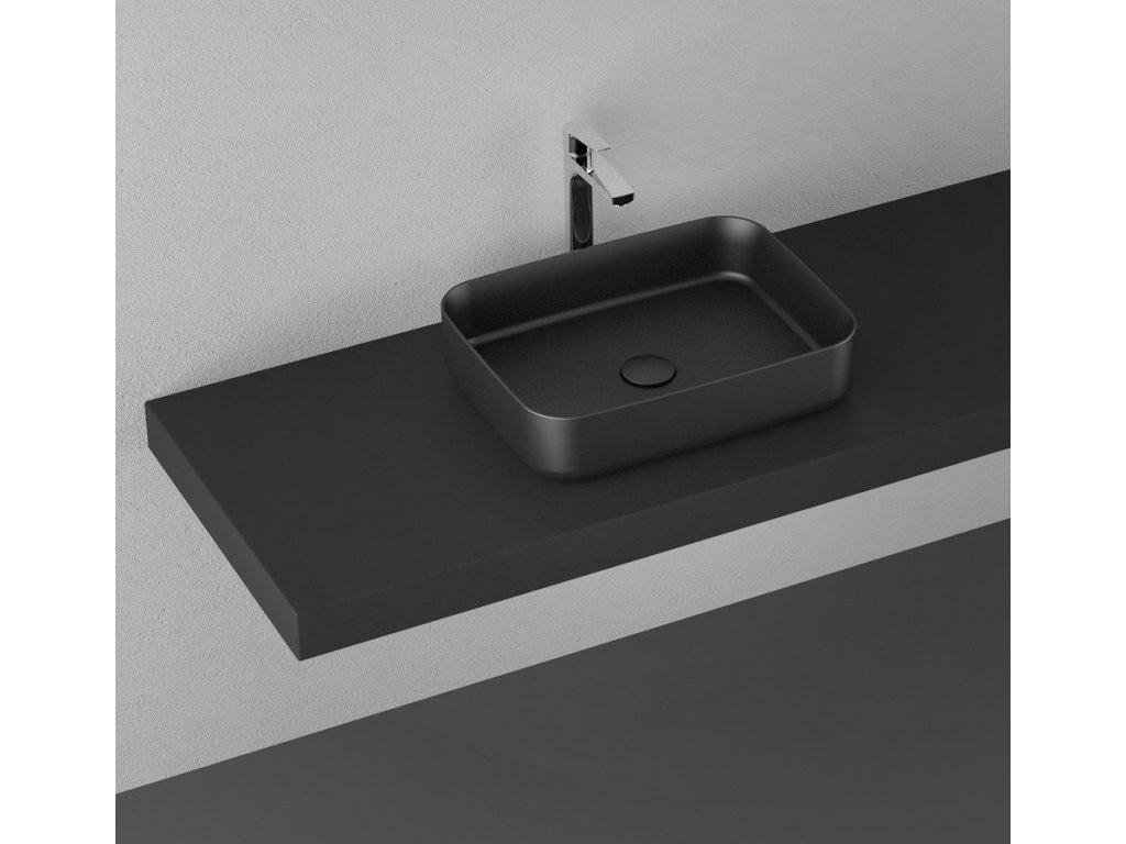 INFINITY RECTANGLE keramické umývadlo na dosku, 50x36cm, čierna mat