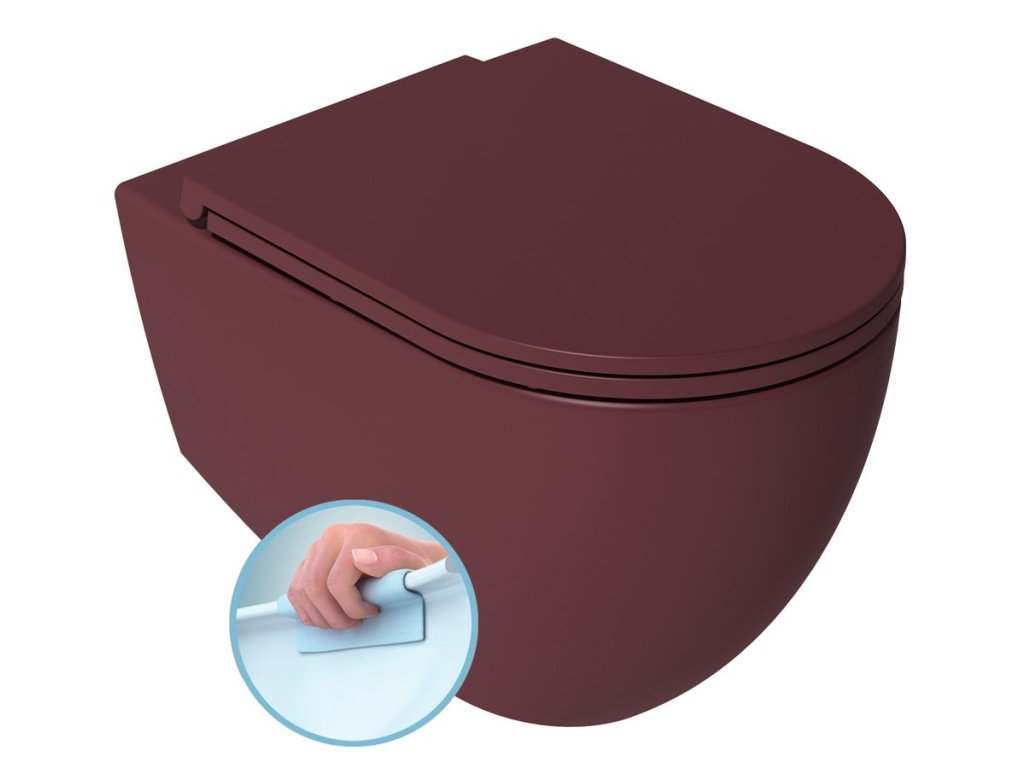 INFINITY závesná WC misa, Rimless, 36,5x53cm, Matná maroon Red