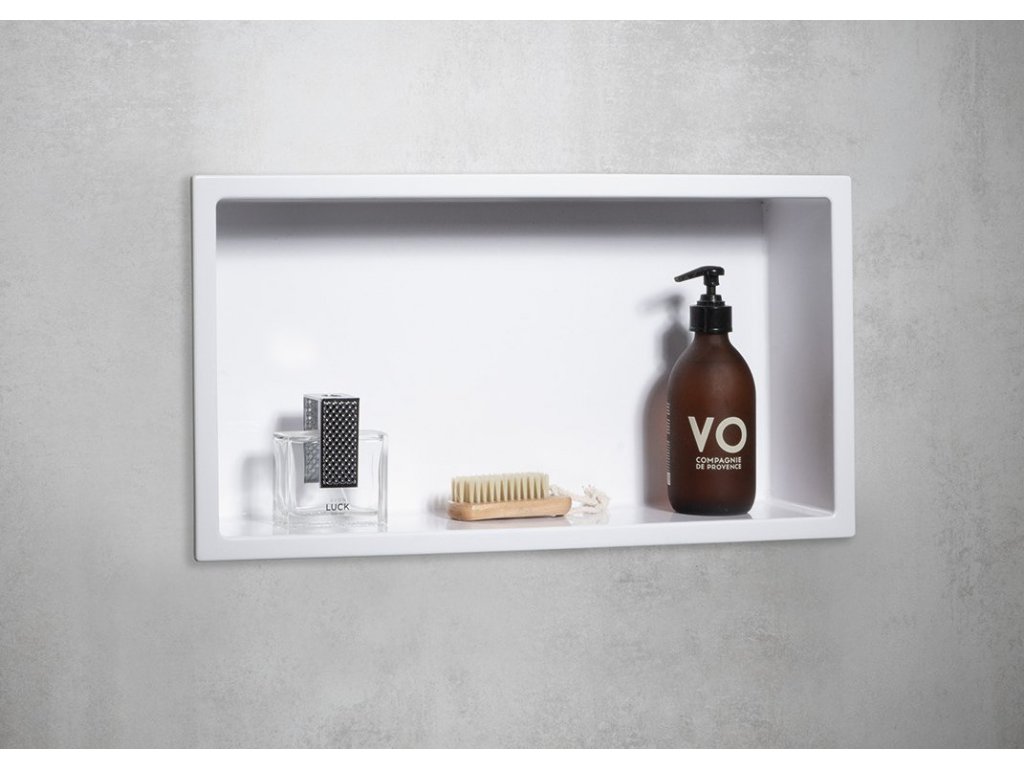 INSERTA zapustená polica do obkladu, liaty mramor, 510x270mm, biela