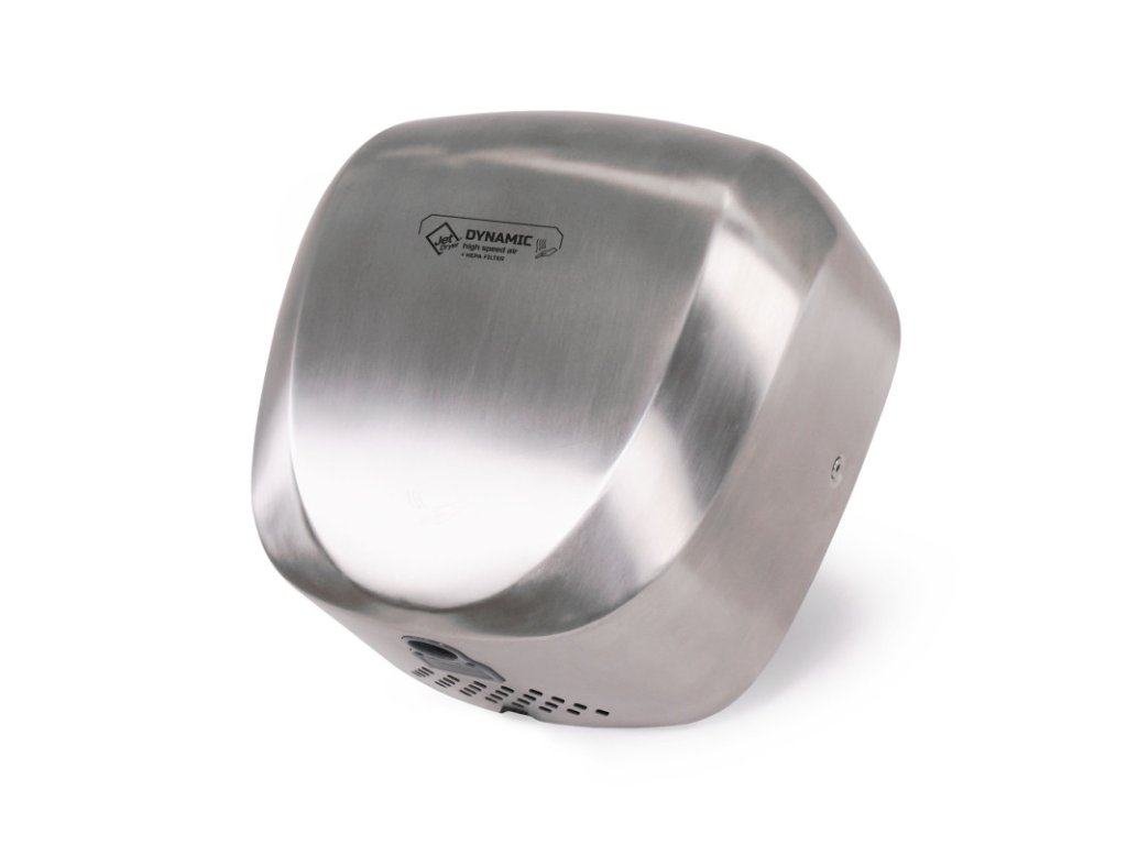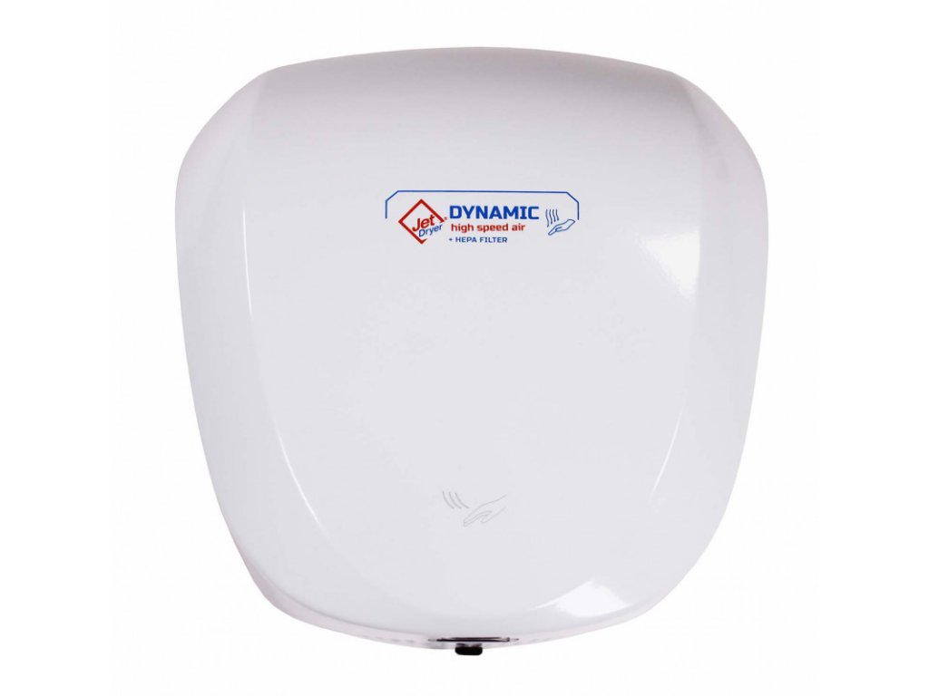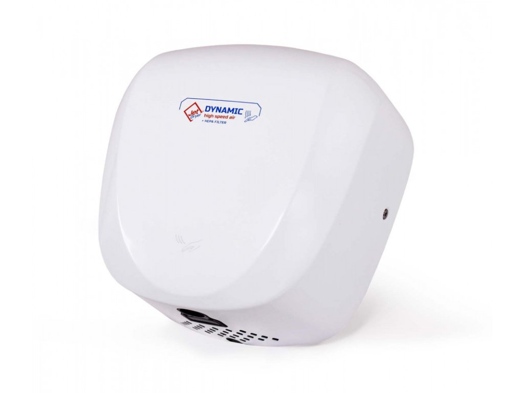 DYNAMIC je jediný sušič rúk z radu Jet Dryer vybavený HEPA filtrom. Silne dimenzovaný motor v priestrannom kovovom kryte predurčuje tento sušič do prevádzok s veľmi frekventovanou prevádzkou. Ohrev vzduchu sa spína automaticky podľa okolitej teploty.