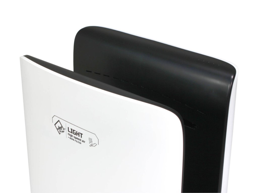 Jet Dryer LIGHT predstavuje elegantné sušenie rúk v ultra malom rozmere. Tryskový sušič je vhodný predovšetkým do umyvární limitovaných priestorom. Sušič rúk LIGHT je vybavený HEPA filtrom. Voda, ktorá sa pri vysúšaní neodparí, je zachytávaná v odkvapovej nádobke.