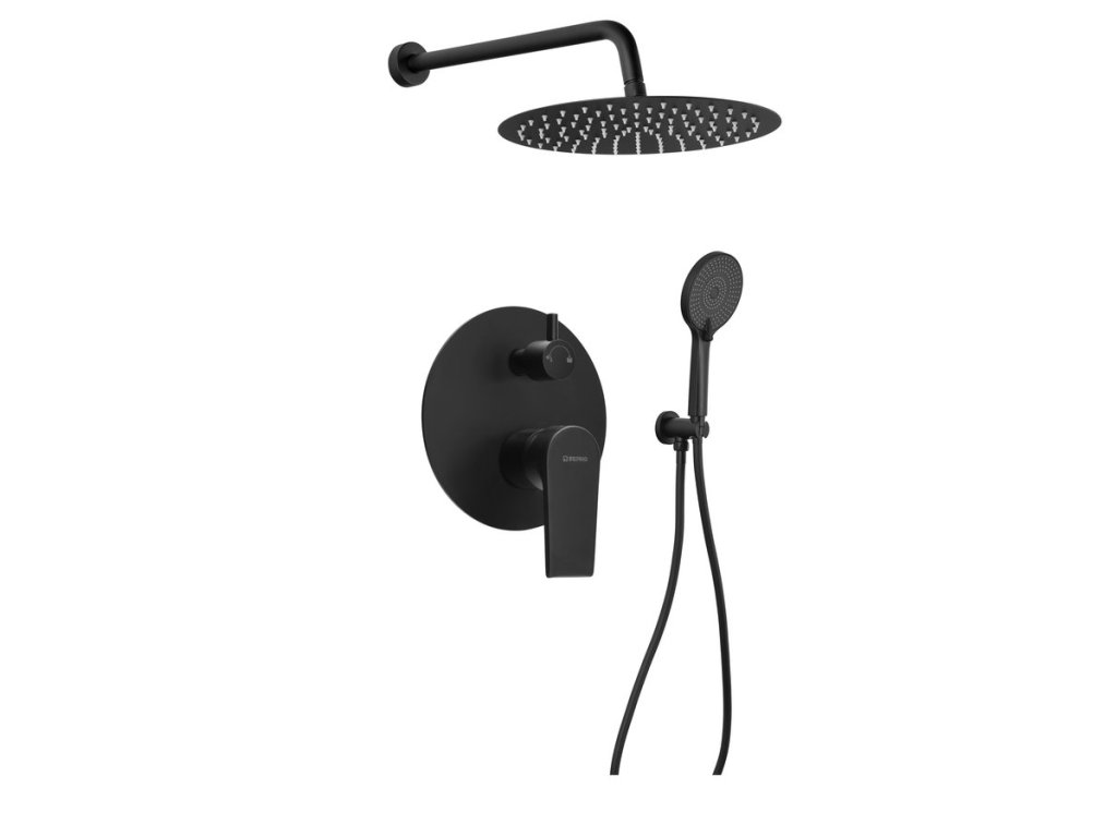 KAI podomietkový sprchový set s pákovou batériou, otočný prepínač, 2 výstupy, čierna matná