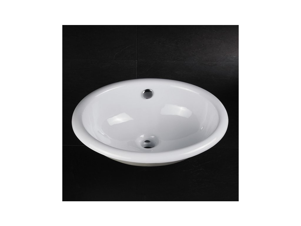 Keramické umývadlo s bielou glazúrou, vhodné na zapustenie do doskyUmývadlo je s prepadom a bez otvoru pre batériu.