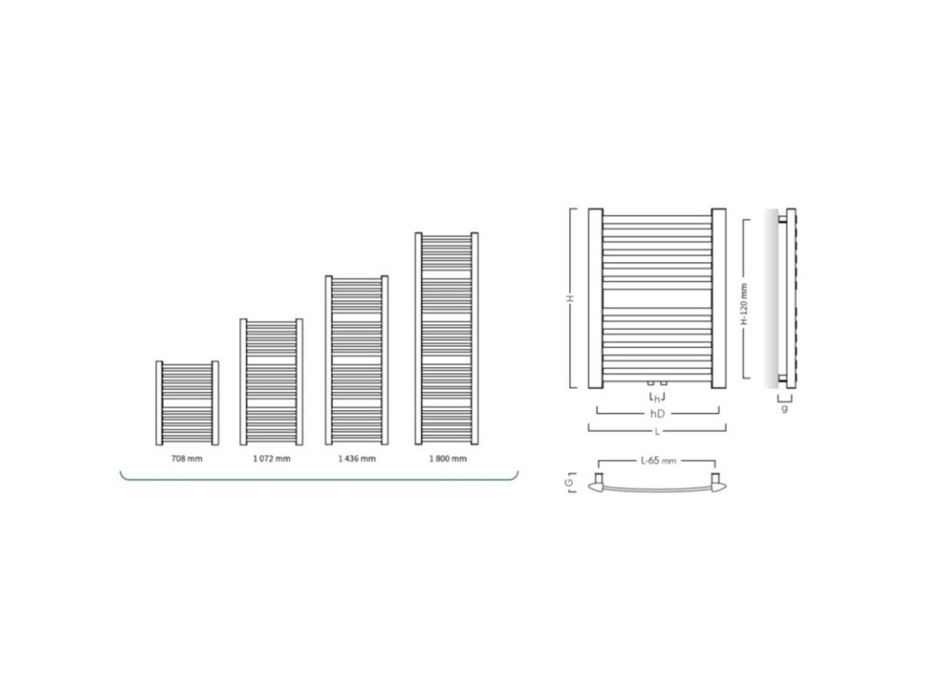 Dostupné rozmery radiátora RETTO vo farbe C12 graphite do kúpeľne: