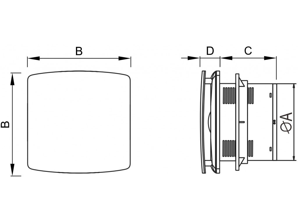 - Zpětná klapka, která zabraňuje proudění vzduchu zpět do místnosti z ventilačního potrubí