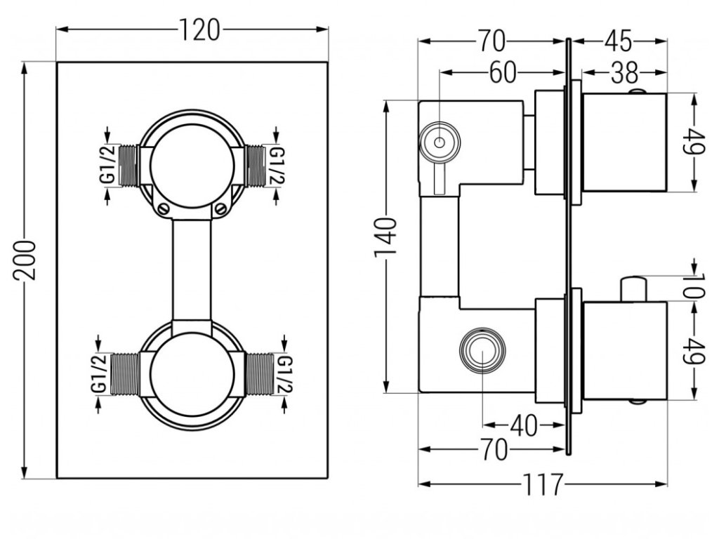 Připojení: 2x G 1/2 "vstup a 2x G 1/2" výstup