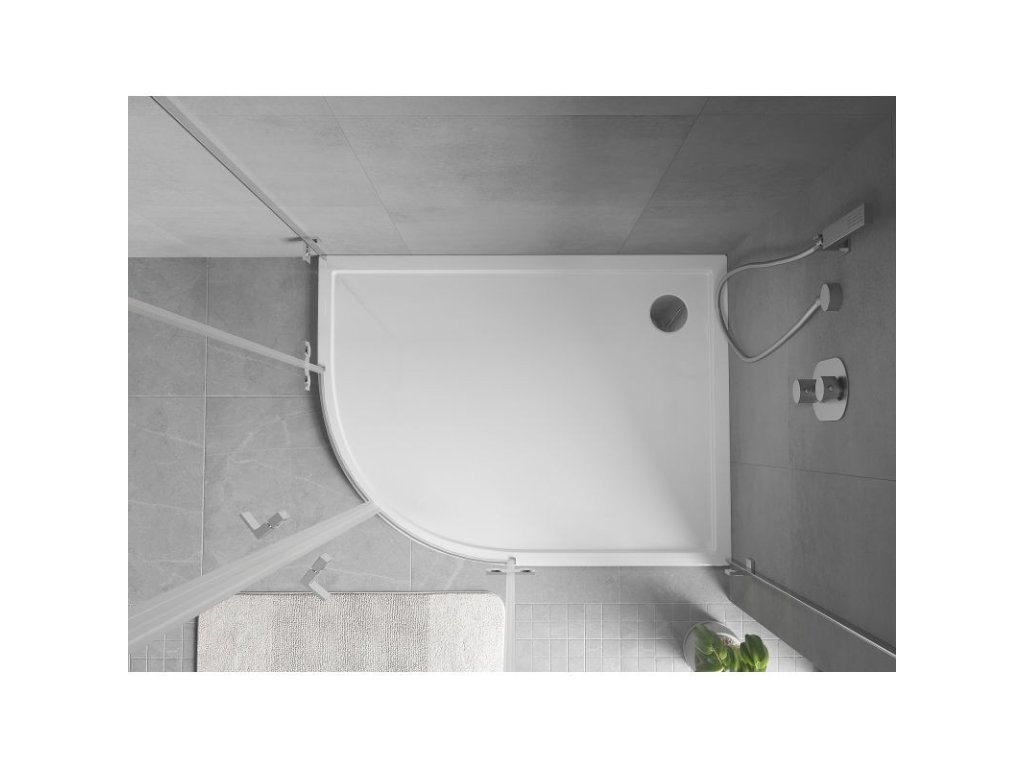 MEXEN - Flow Sprchová vanička čtvrtkruh asymetrická slim pravá 90 x 80, bílá lesk 46Q108090R