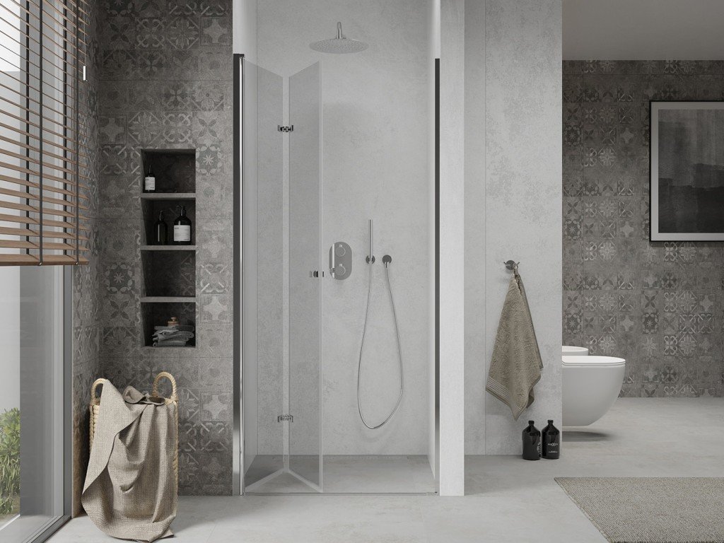 MEXEN - Lima sprchové dveře zalamovací 80, transparent, chrom se stěnovým profilem 856-080-000-01-00