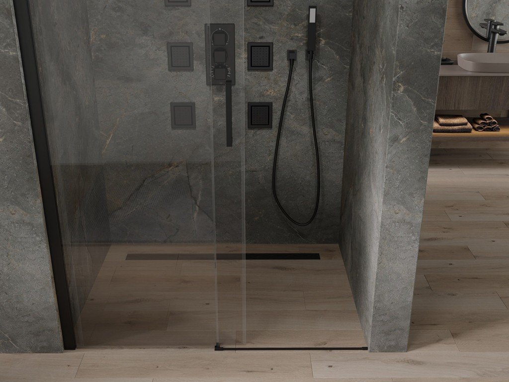 MEXEN - Omega posuvné sprchové dveře 110, transparent, černá se sadou pro niku 825-110-000-70-00