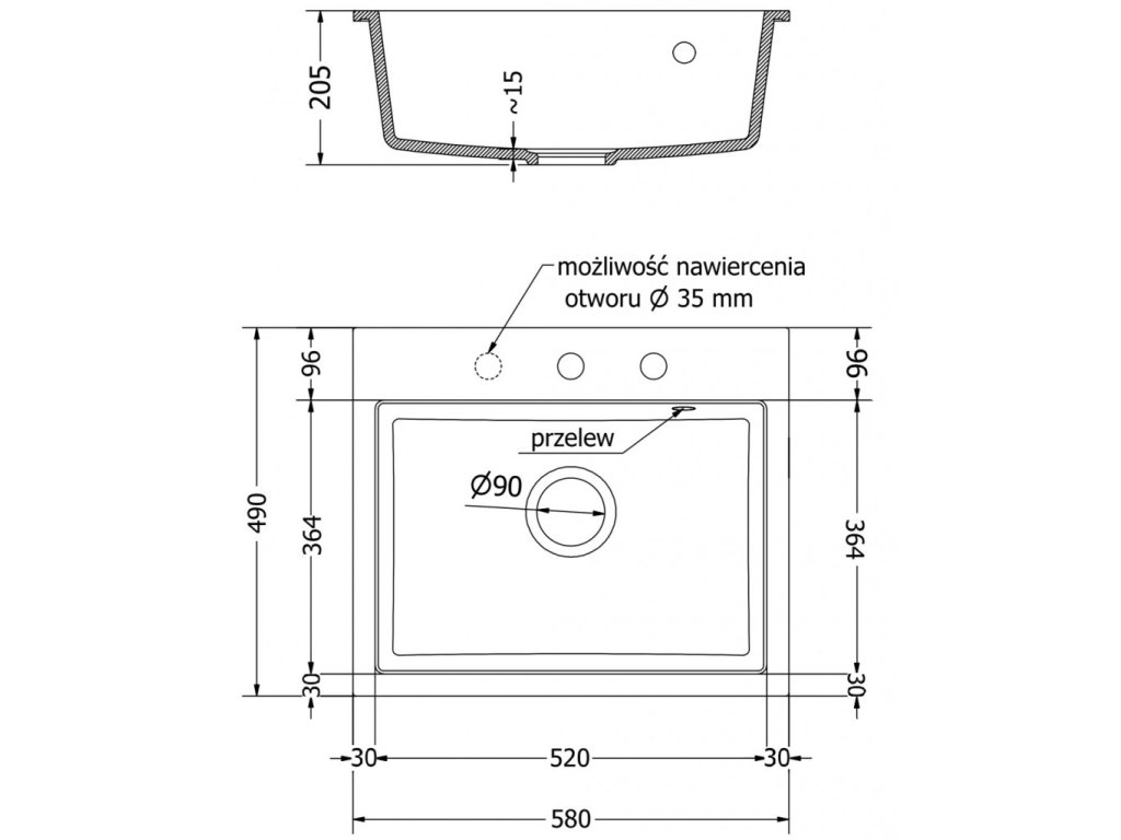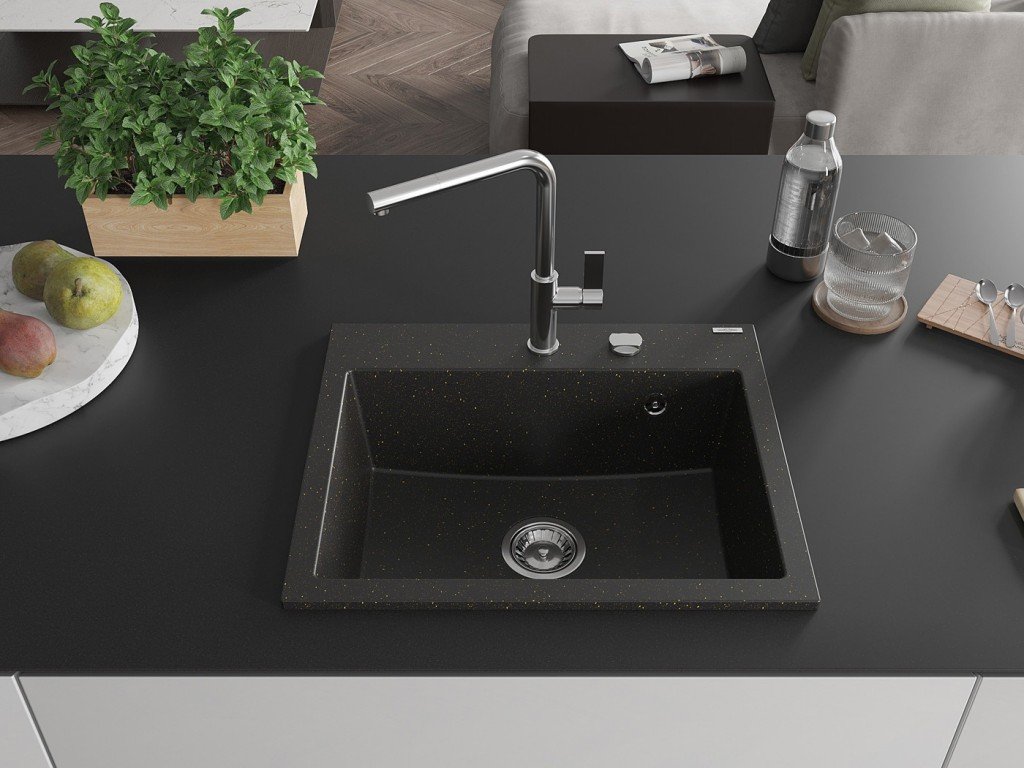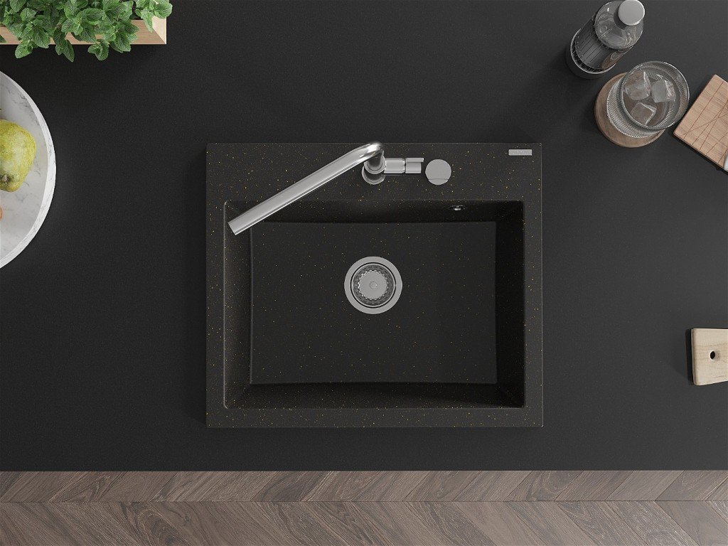 MEXEN - Oscar granitový dřez 580 x 490 mm, černá/zlatá metalik, sifon chrom 6519581000-75