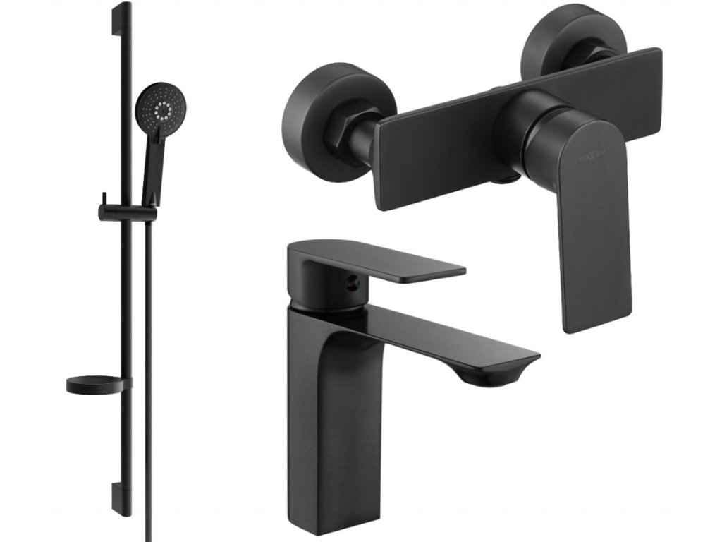 MEXEN/S - Alexa SET umyvadlová + sprchová baterie s příslušenstvím DS40, černá 71204DS40-70