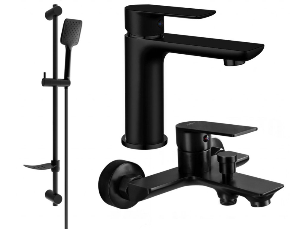 MEXEN/S - Alfa DF62 Set umyvadlové a vanové baterie s příslušenstvím, černá 745703DF62-70