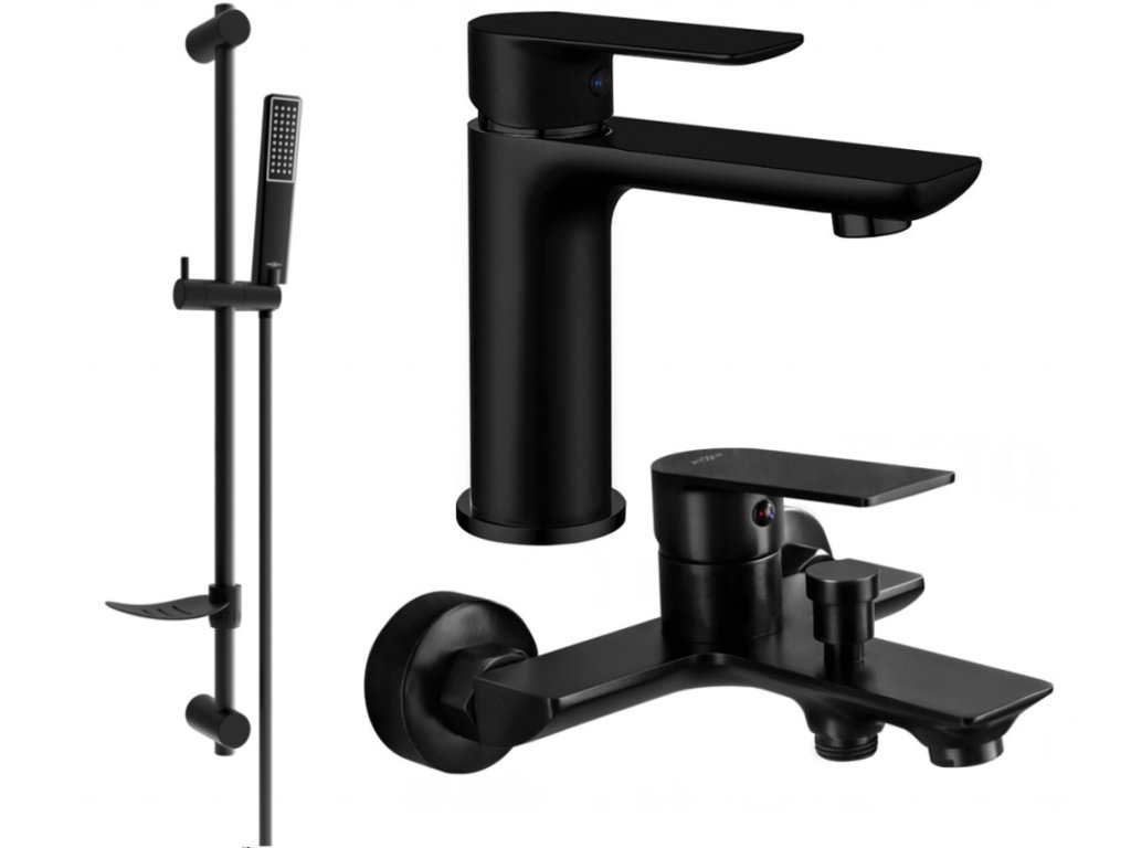 MEXEN/S - Alfa DF72 Set umyvadlové a vanové baterie s příslušenstvím, černá 745703DF72-70