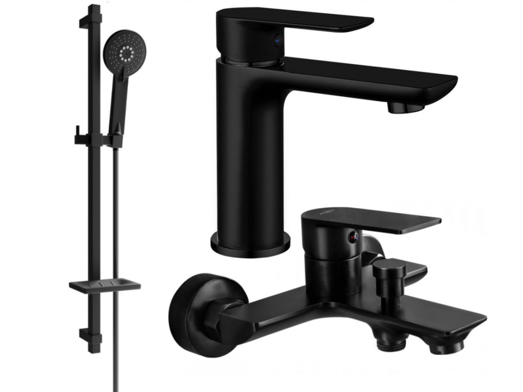 MEXEN/S - Alfa DQ40 Set umyvadlové a vanové baterie s příslušenstvím, černá 745703DQ40-70