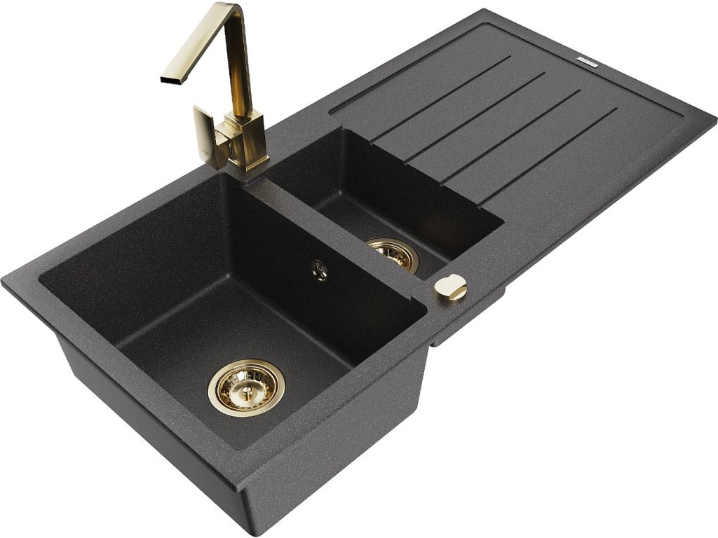 MEXEN/S - Andres granitový dřez s odkapávačem včetně baterie Rita, černá nakrapiany 6515-76-670300-50