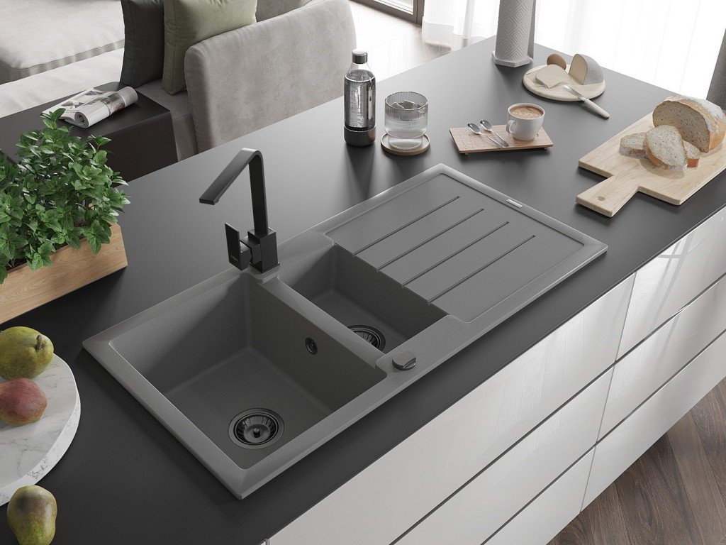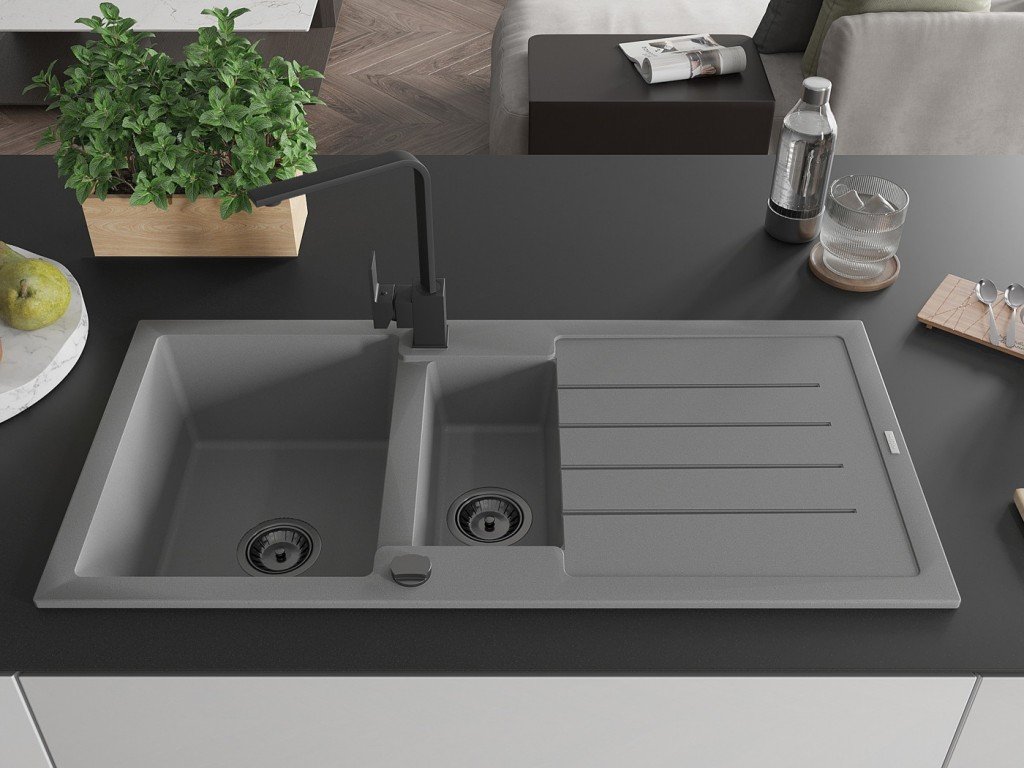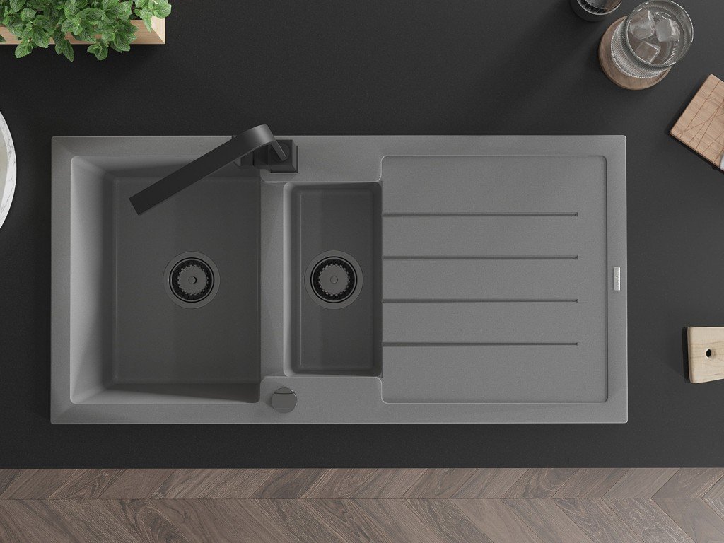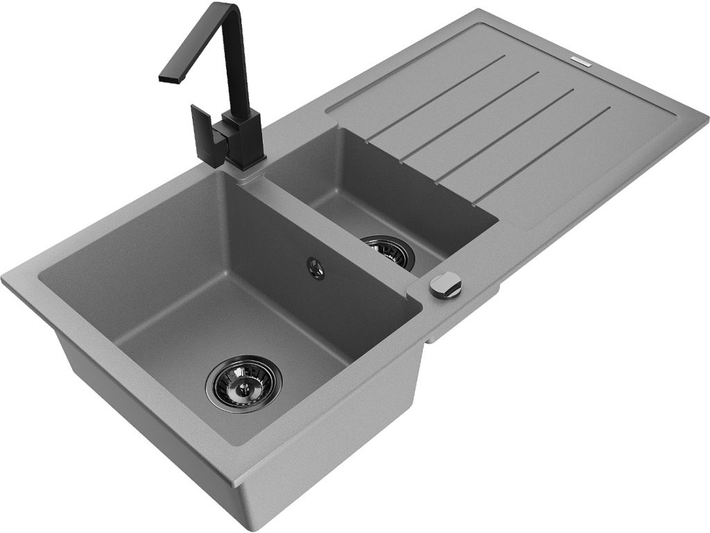 MEXEN/S - Andres granitový dřez s odkapávačem včetně baterie Rita, šedá 6515-71-670300-70-B