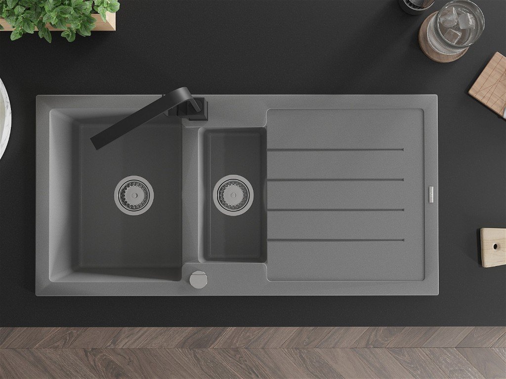 MEXEN/S - Andres granitový dřez s odkapávačem včetně baterie Rita, šedá 6515-71-670300-70