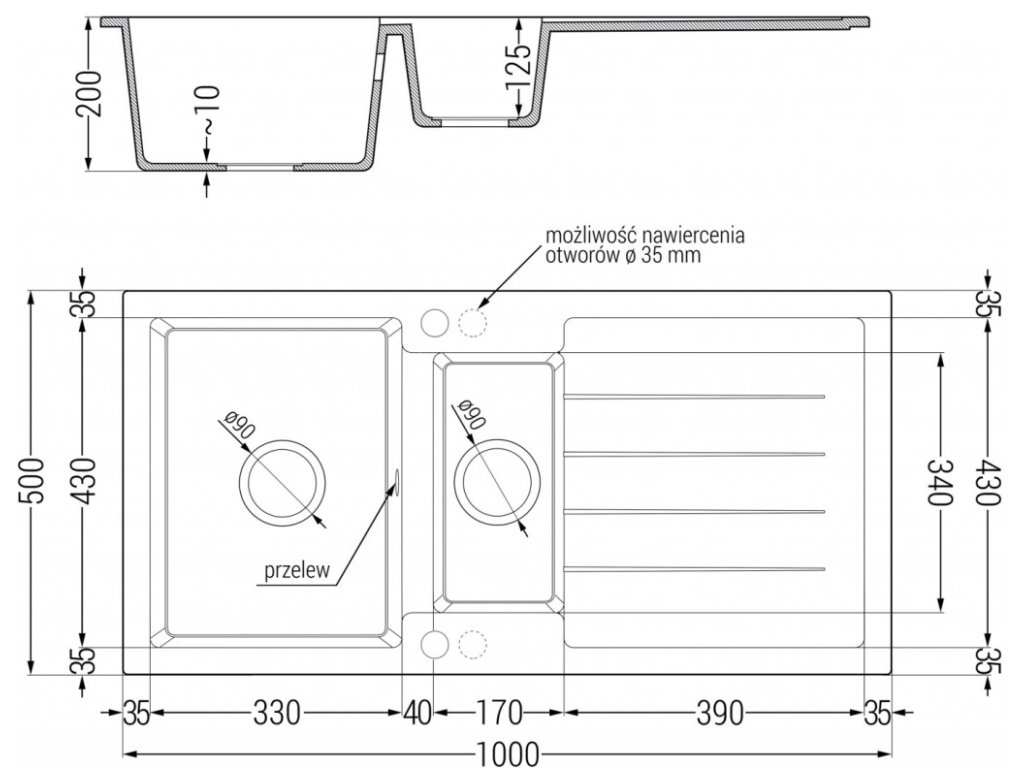 Dva dodatečné vyfrézované otvory pro samoděrování ø35