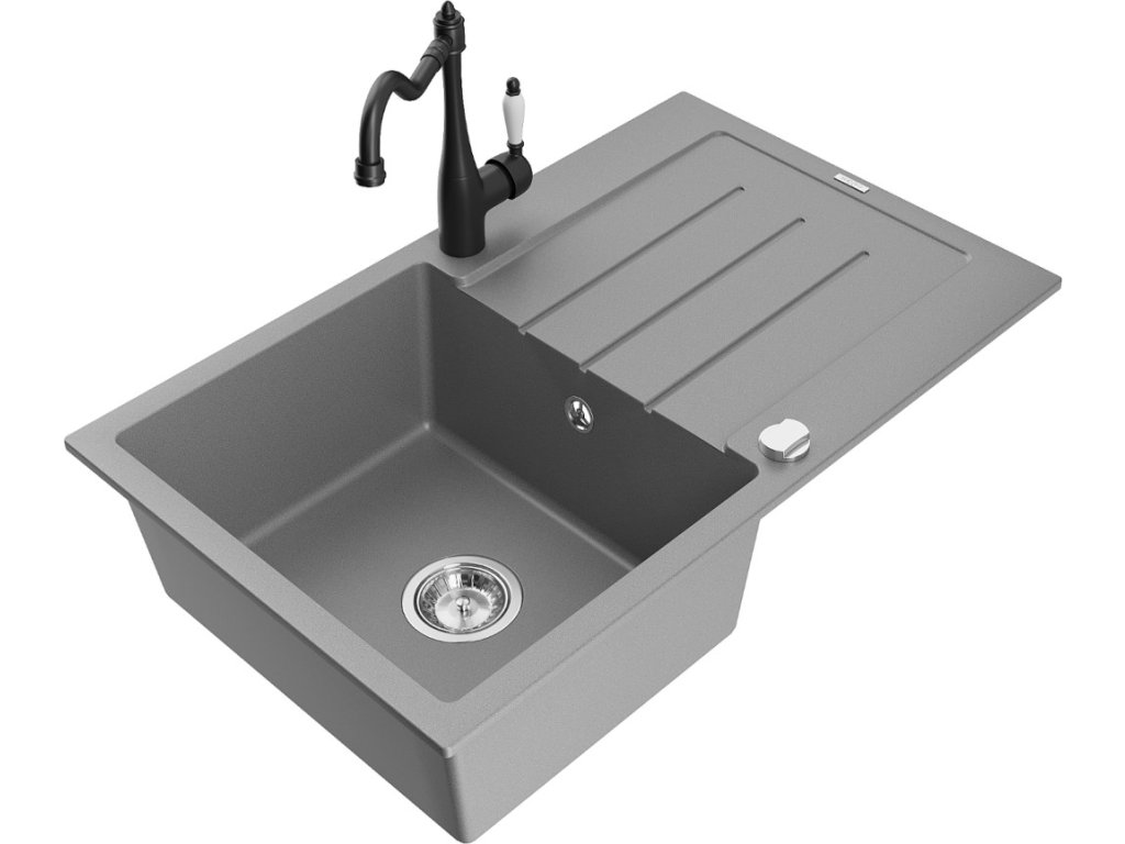 MEXEN/S - Bruno granitový dřez 1-miska s odkapávačem včetně baterie Carla, šedá 6513-71-670700-70
