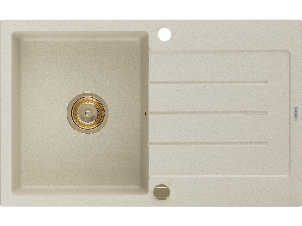 MEXEN/S - Bruno granitový dřez 1 s odkapávačem 795x495 mm, béžová, + zlatý sifon 6513791010-69-G