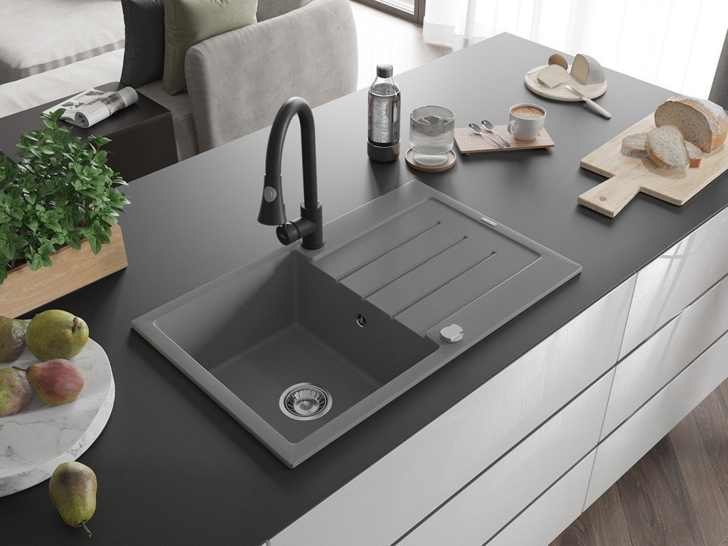 MEXEN/S - Bruno granitový dřez 1 s odkapávačem včetně baterie Elia, šedá 6513-71-670101-70