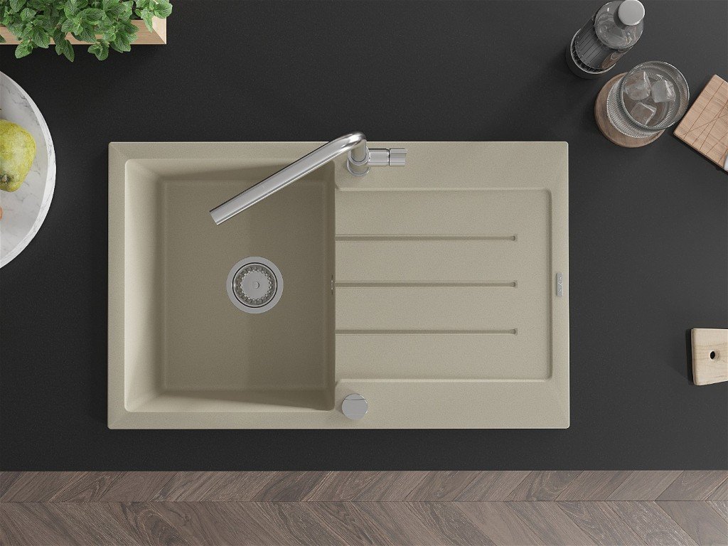 MEXEN/S - Bruno granitový dřez 1 s odkapávačem včetně baterie Flora, béžová 6513-69-670401-00