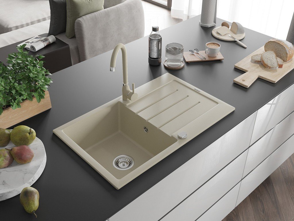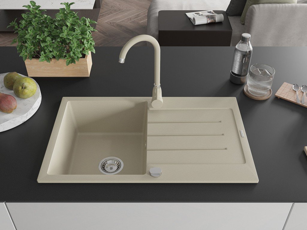 MEXEN/S - Bruno granitový dřez 1 s odkapávačem včetně baterie Telma, béžováy 6513-69-670200-69