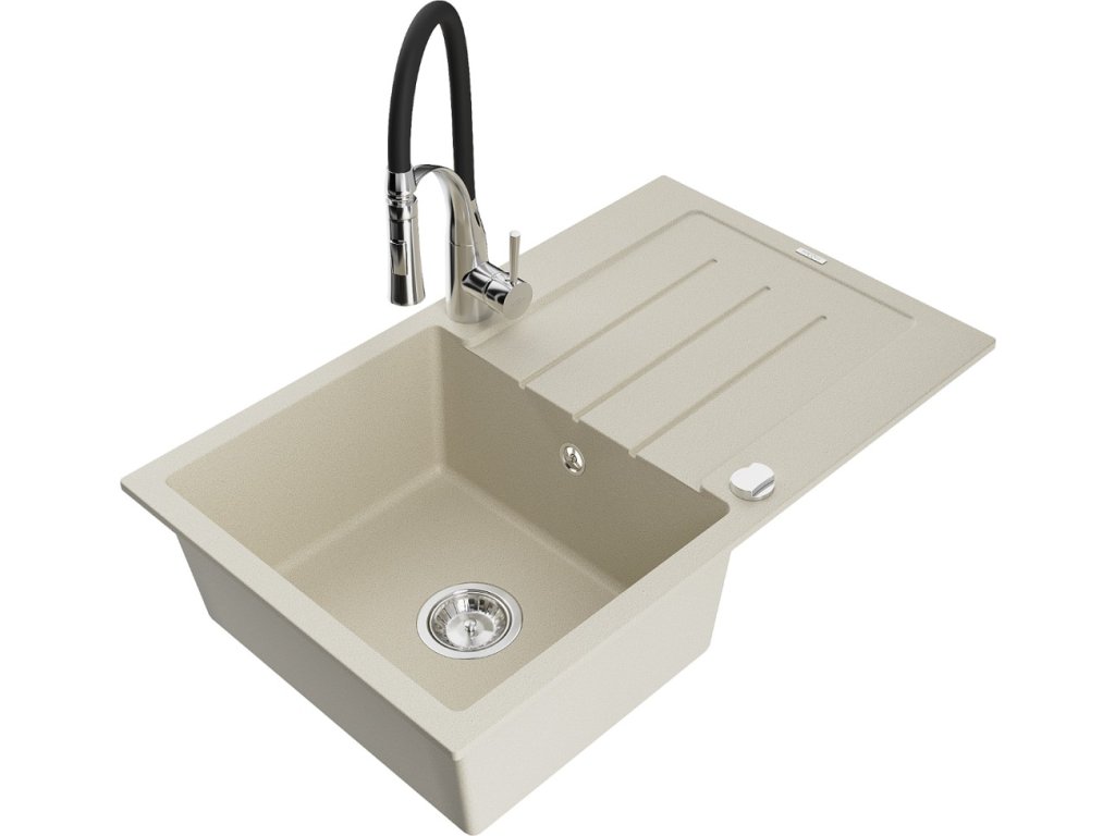 MEXEN/S - Bruno granitový dřez s odkapávačem včetně baterie Aster, béžová 6513-69-73450-07